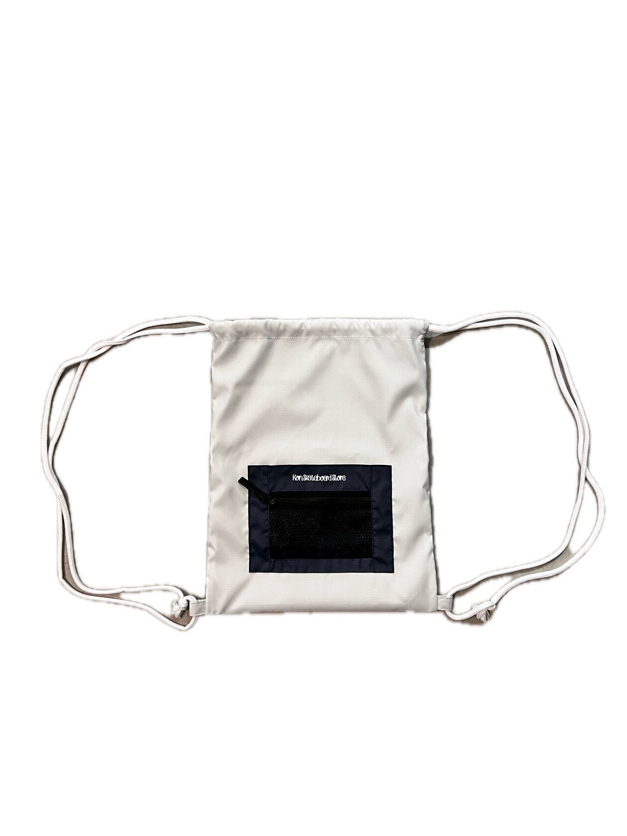 当店オリジナルのナイロンリップ素材を使用したナップサックです。 フロントには便利なメッシュポケット付き。 カラー:ホワイト